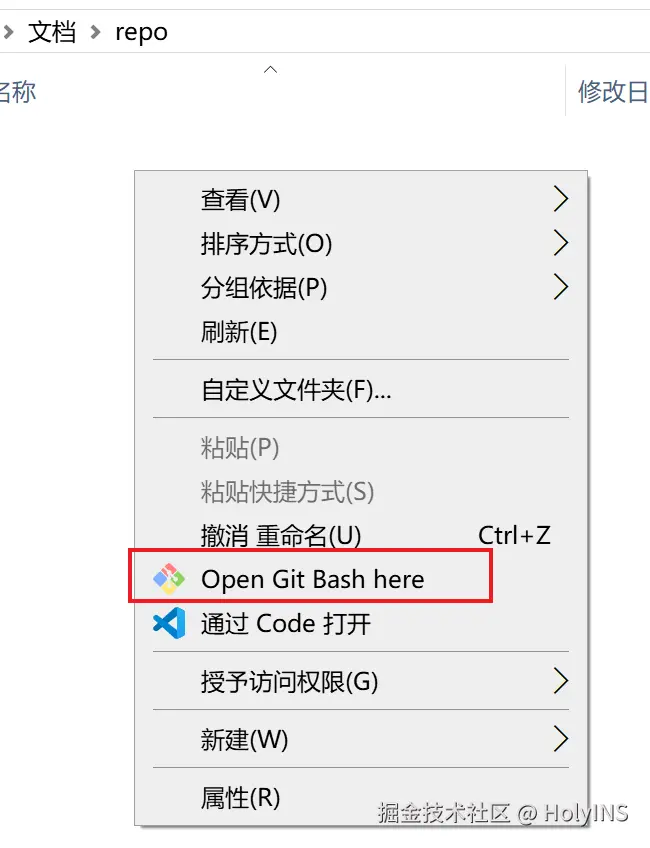 打开右键菜单后点击 Open Git Bash here
