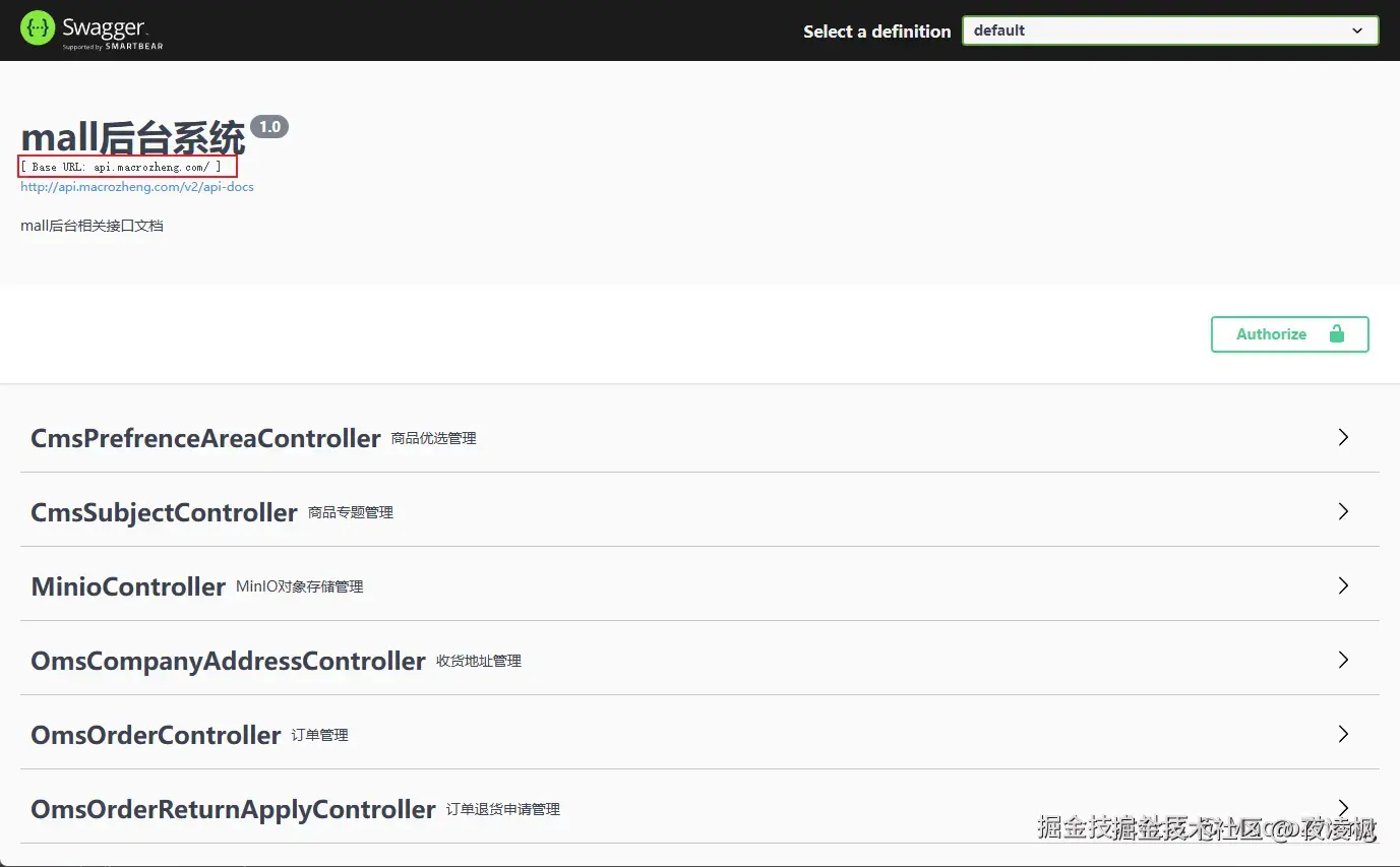 - 之后就能正常访问到mall项目后端API服务了,访问地址:api.macrozheng.com/swagger-ui/