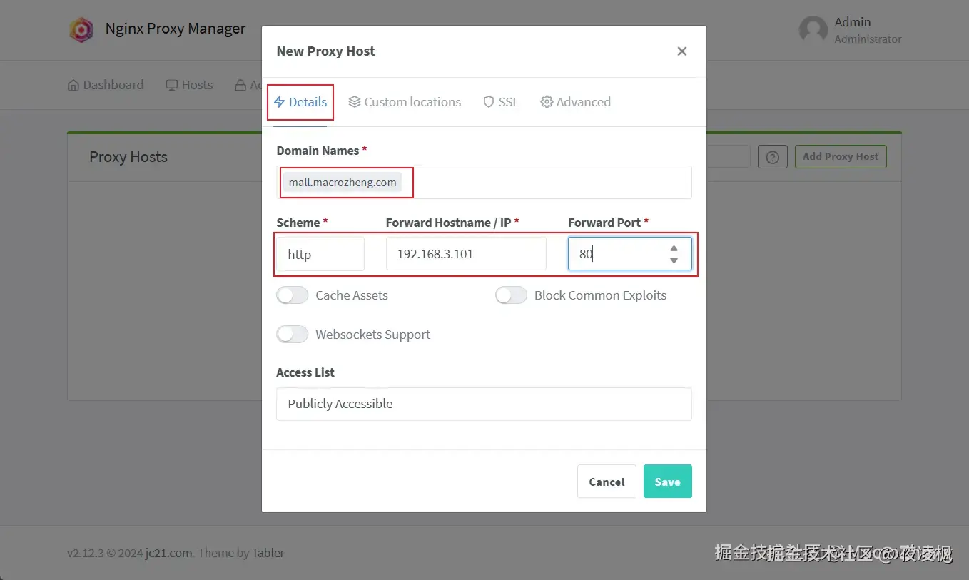 接下来就以我的mall电商实战项目的部署为例,演示下nginx-proxy-manager的使用。