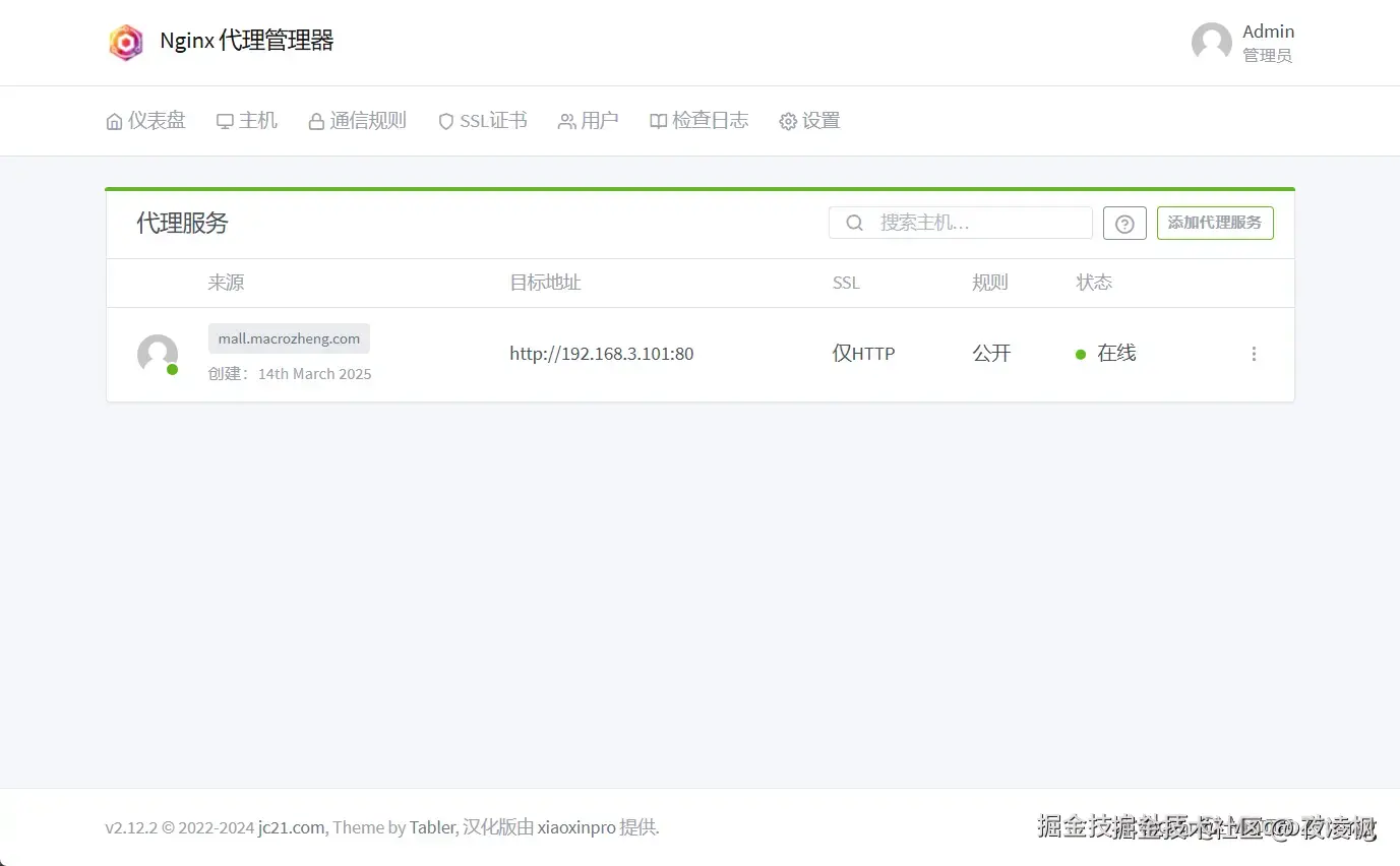 nginx-proxy-manager是一款Nginx可视化管理工具,具有强大的用户界面,目前在Github上已有25k+star。 使用它你无需深入了解Nginx,即可实现请求代理、自动申请SSL证书等功能。