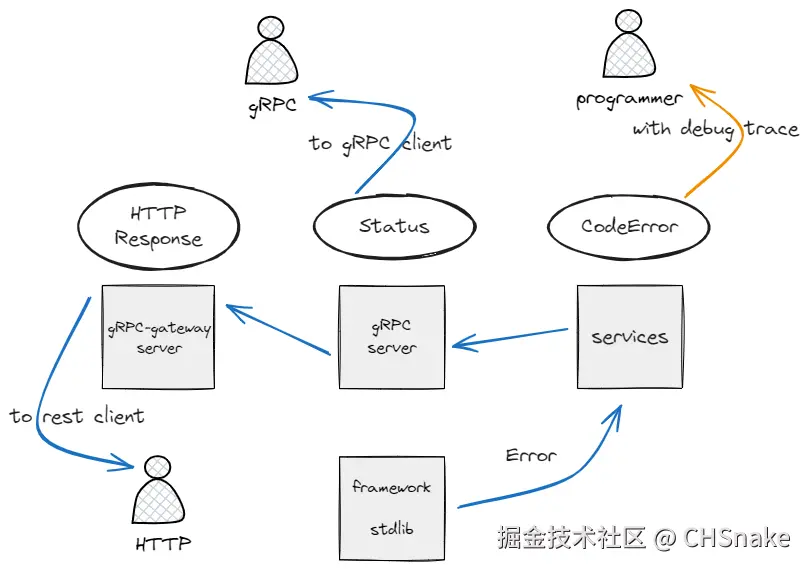 上面那两个结构是给人看的,那给牛马看的又长什么样?如果你是负责开发服务的人,当你看到服务的错误信息,你希望这信息帮你干些啥?