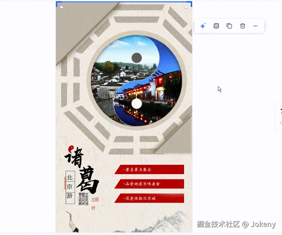 但生成的图片质量还行,而且在页面上点击还能弹出对话框进行二次修改,比如让AI修改文本或者重新生成背景图片等,这种界面直接进行二创的感觉还挺不错的。