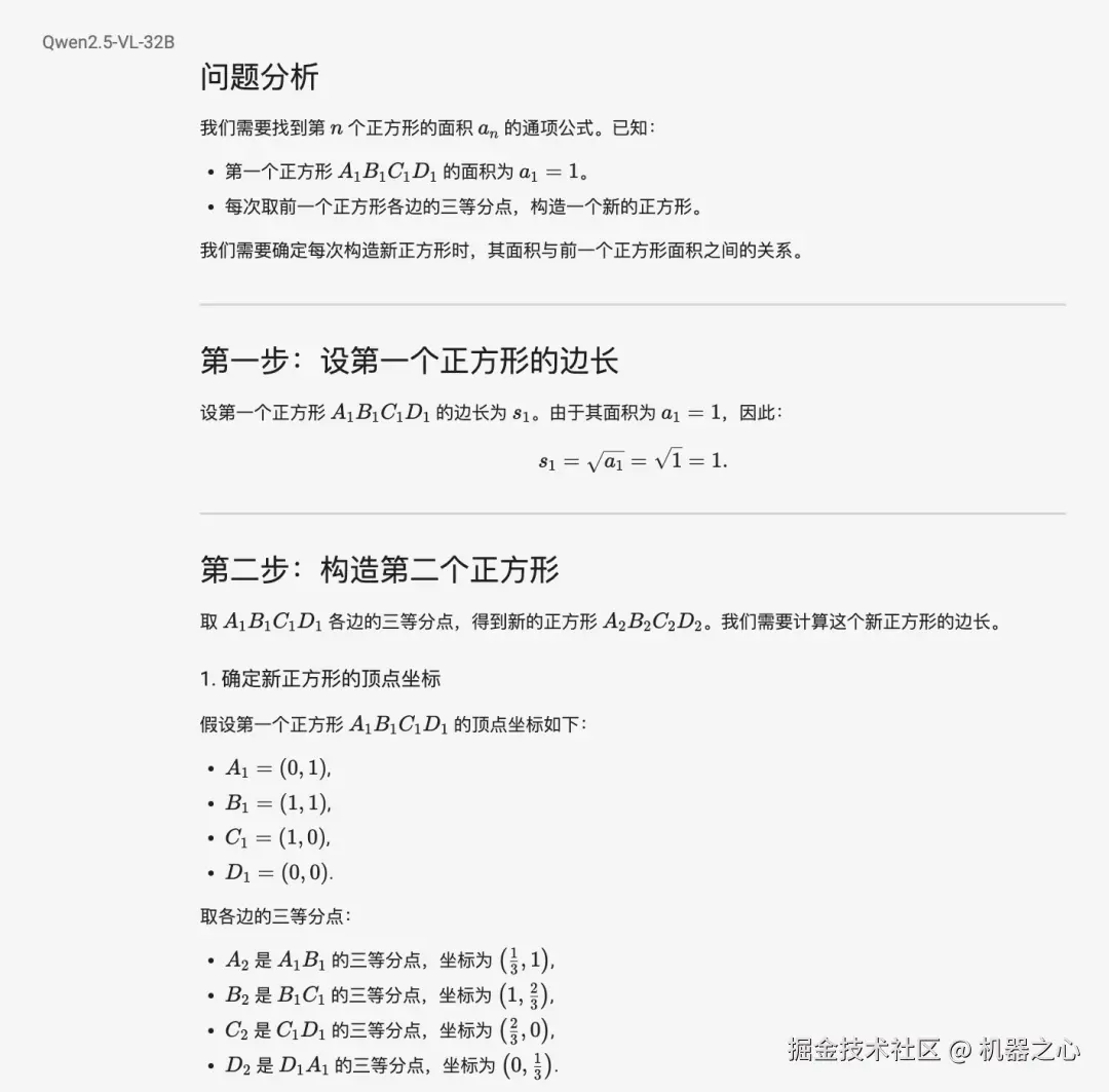 不过团队也介绍了,Qwen2.5-VL-32B 在强化学习框架下优化了主观体验和数学推理能力,但主要还是基于「快速思考」模式。