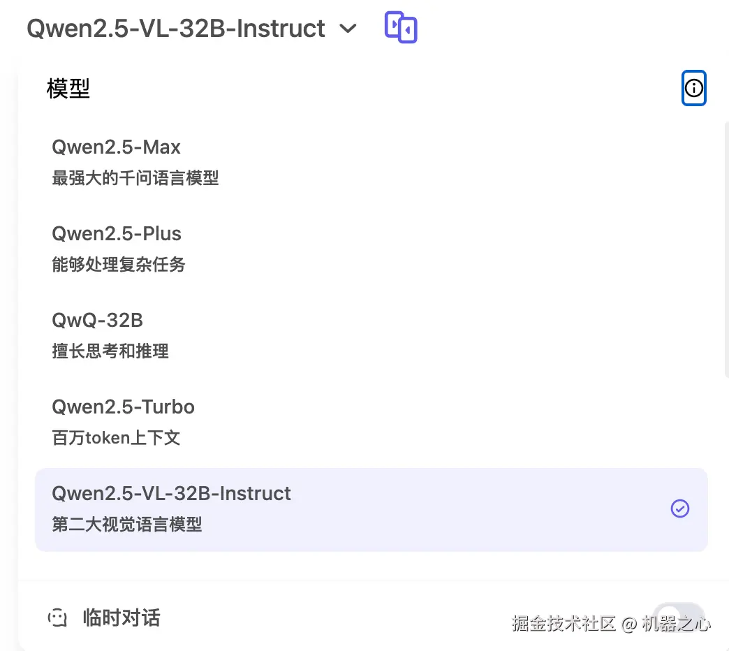 对于所有用户来说,在 Qwen Chat 上直接选中 Qwen2.5-VL-32B,即可体验:chat.qwen.ai/