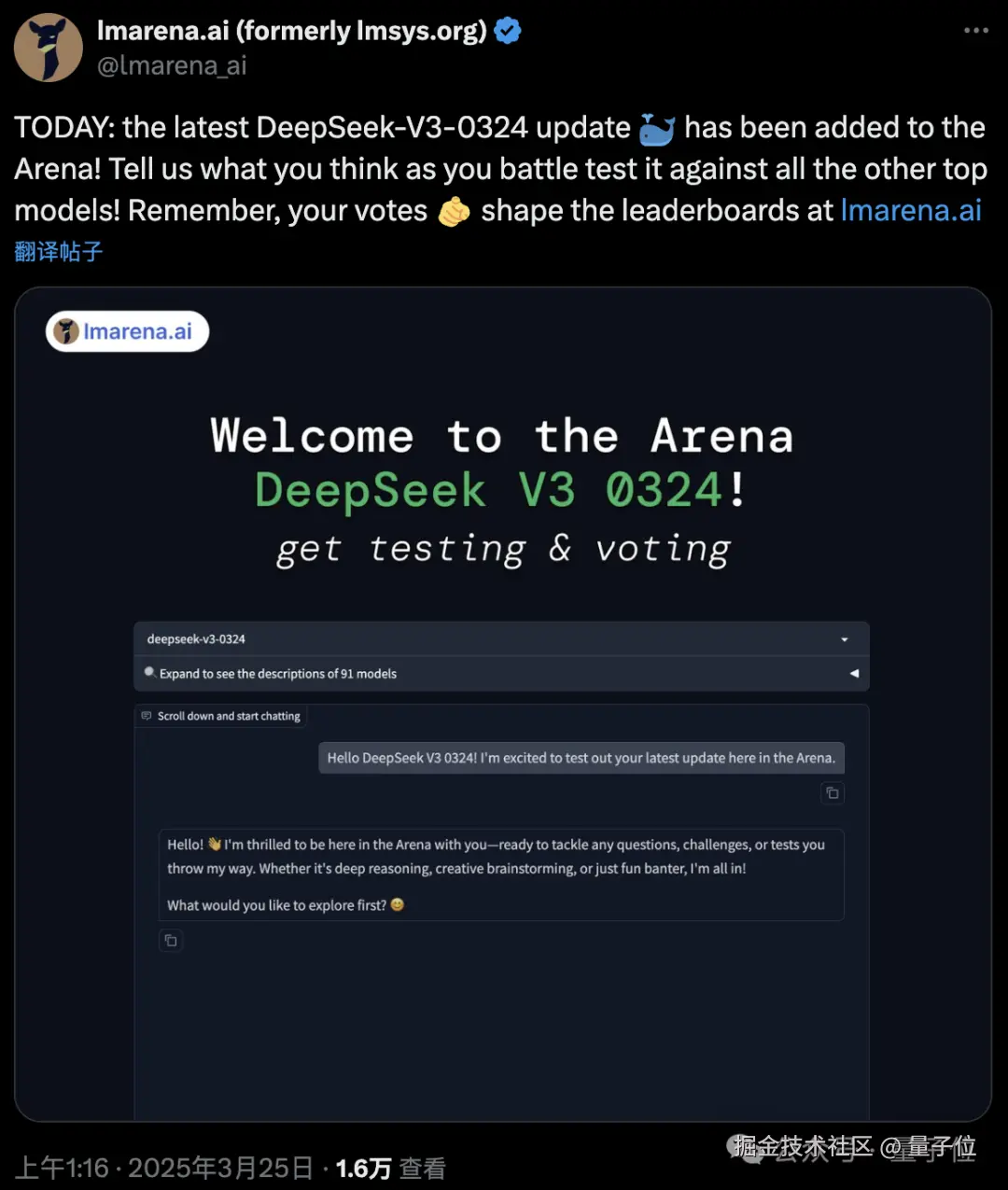目前在官网和官方 APP(关闭深度思考即可)、HuggingFace 等渠道都能体验到 v3-0324。