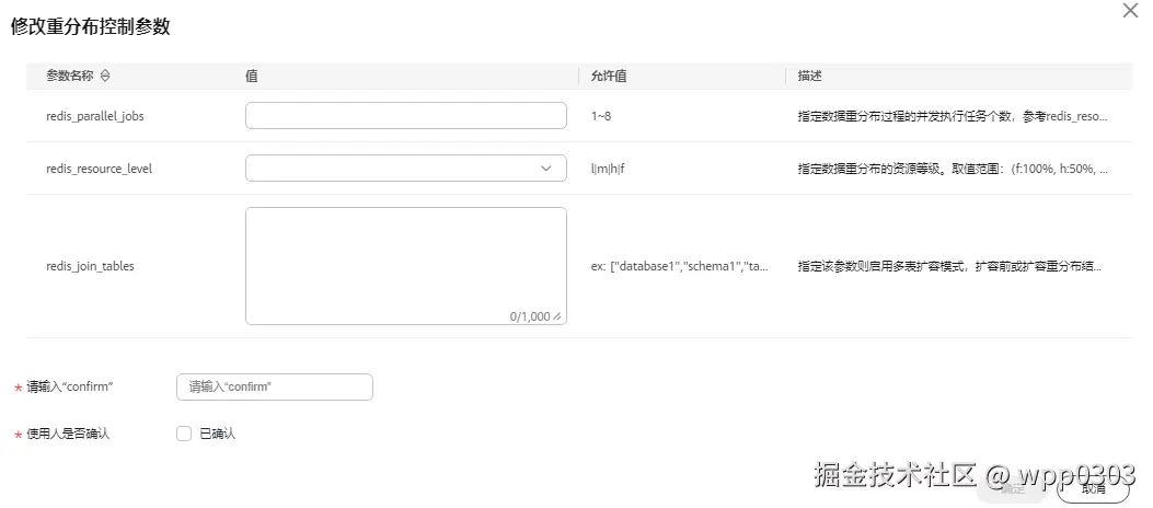 - 修改扩容重分布参数仅支持V2.0-2.6及以上版本的分布式实例。
