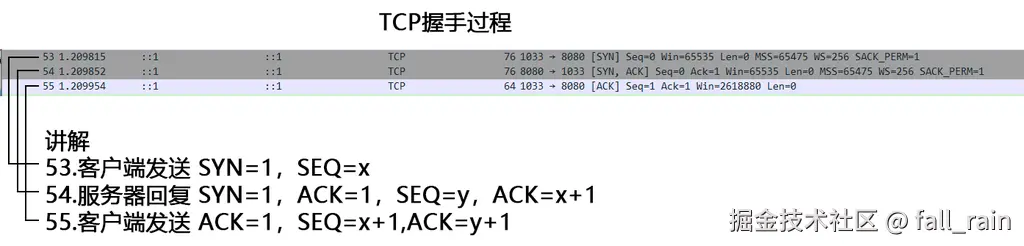 - 服务器必须确认(ACK)客户端的SYN,同时自己也发个SYN的字节,它含有服务器将在同一连接中发送的数据的初始序列号。