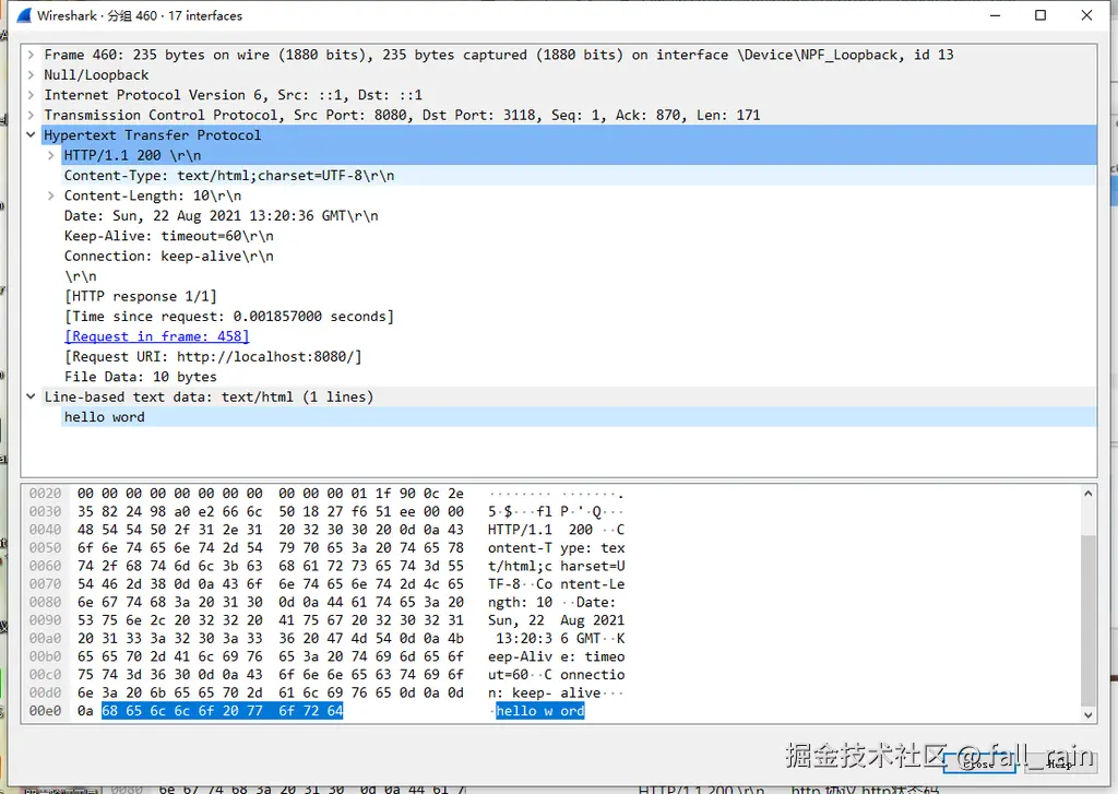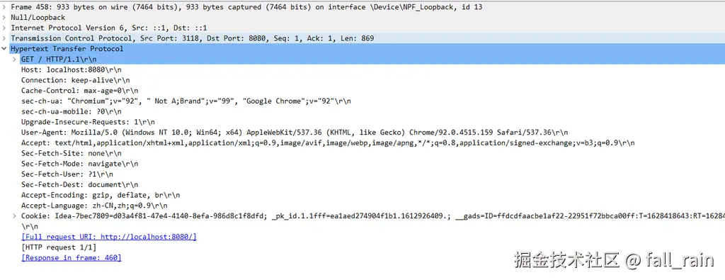 首先先说思路,既然想要基于socket实现web服务器,就要知道在输入网址后都发生了什么,所以我们用springboot写个简易的web服务用Wireshark抓个包看看