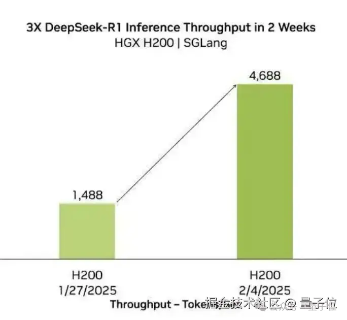 实际上,SGLang 一直是 DeepSeek 模型的一个最佳拍档,不仅对于 AMD,在英伟达 H200 上,也能带来类似的性能提升。