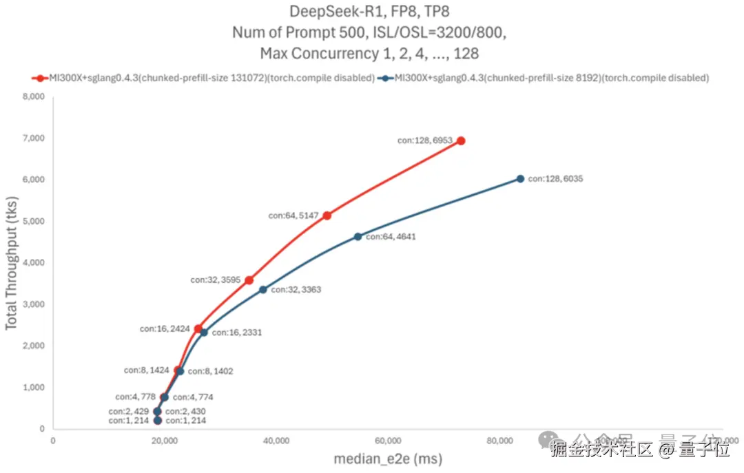 于是 AMD 提高了 chunked_prefill_size 参数的大小,用更高的内存占用换取了预填充过程的加速。