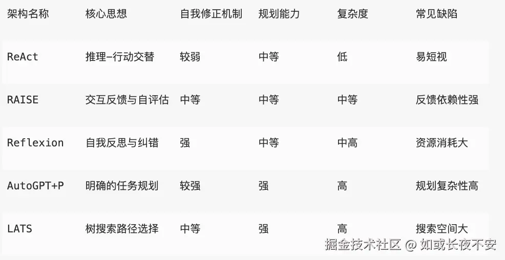 Reflexion 在 ReAct 的基础上,增加了一个 自反式推理模块,允许智能体在每次行动后回顾自己的推理过程,发现可能的错误或改进点,从而优化后续推理。
