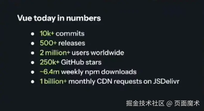 Void Zero是尤雨溪创办的新公司的名称,此次也是为了给自己公司背书。来看看 Vue 这 11 年来所取得的成就吧: