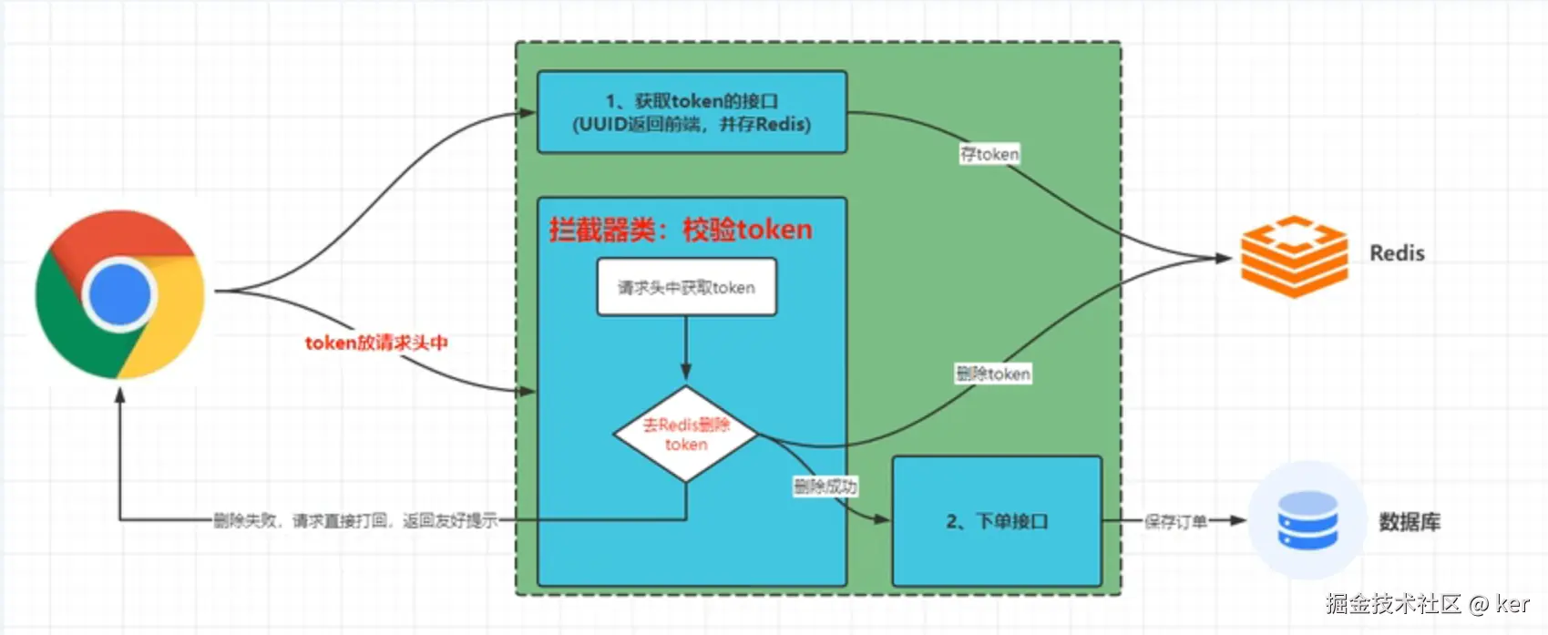 - 用户层令牌桶通过Redis+Lua脚本保证原子性递减,支持突发流量平滑处理