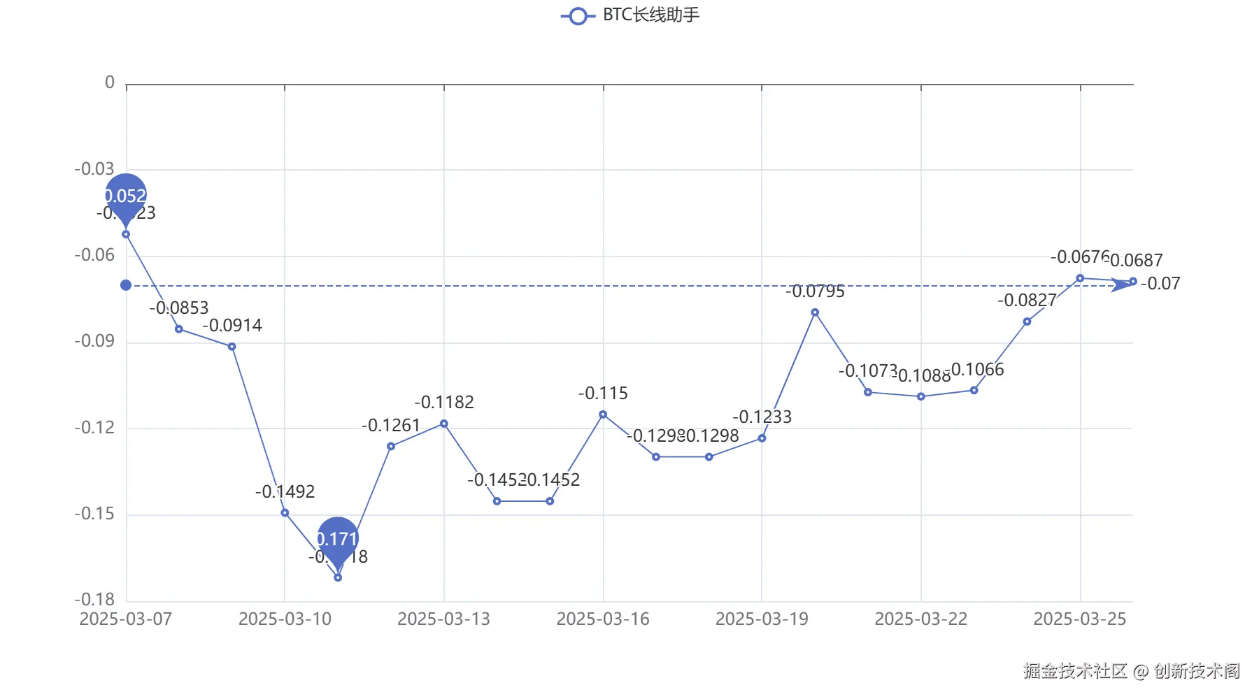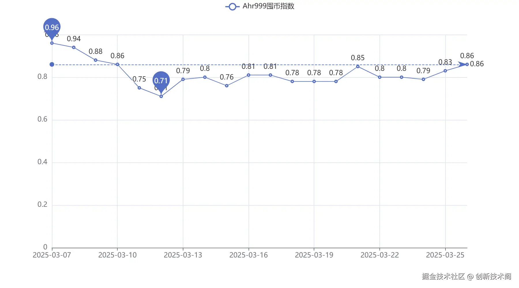 该指标由微博用户ahr999创建,辅助比特币定投用户结合择机策略做出投资决策。该指标隐含了比特币短期定投的收益率及比特币价格与预期估值的偏离度。