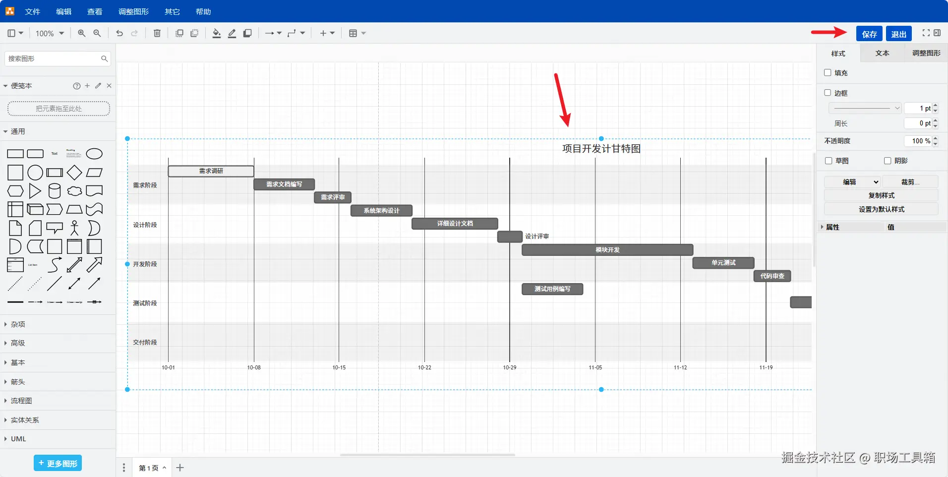 模板库:提供大量专业设计的模板,包括甘特图、流程图、组织结构图等。