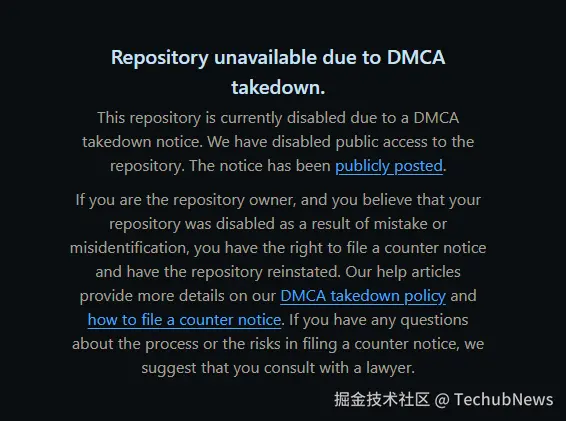 NMA 强调,所有这些存储库都包含违反 DMCA 规定的工具,绕过了技术内容保护措施。GitHub 在审查了投诉并进行了自己的调查后,发现 NMA 的指控是合理的。结果,该平台禁用了所有 3879 个存储库,包括主 BPC 存储库,这对支持该扩展的开发人员和用户社区造成了沉重打击。