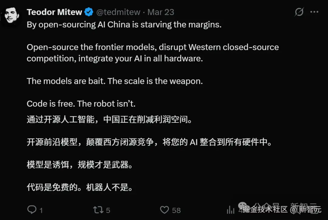 然而内部逻辑却是一致的:因为中国专注于不择手段地赢,这就意味着他们需要复制一些已经被西方放弃的价值观,比如开源,而这曾经被认为是最难模仿的。