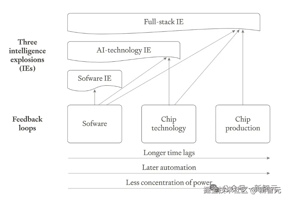 这些过程,会形成几种循环,周期分别是 3 个月、数月,以及数年。相对应的,就是软件大爆炸、AI 技术大爆炸,和全栈大爆炸!
