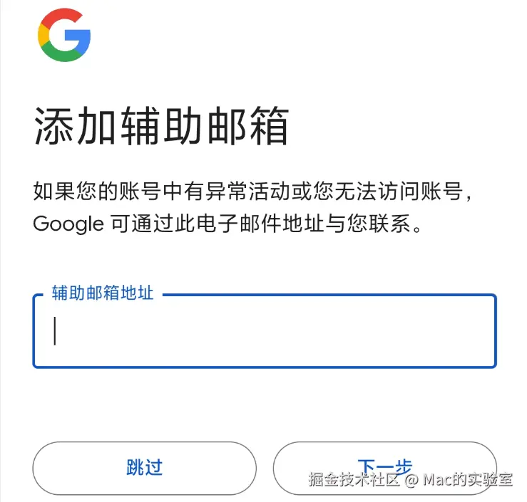 1、这个界面那不一定会出现,如果谷歌系统经过分析后,认为我们的注册环境很ok,可能会跳过这一步,直接到确认辅助邮箱地址的这一步。 ——是否会到这一步是谷歌自动判断的。有的时候把浏览器的语言改为英文,或者使用之前从来没有注册过的设备、浏览器或某个app,可能会跳过这一步,但不总是有效。