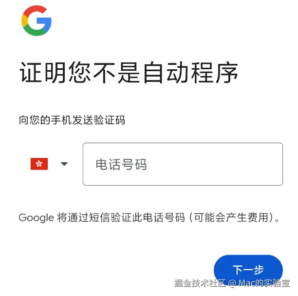 2025年注册Google账号第6步:手机验证,证明您不是自动程序