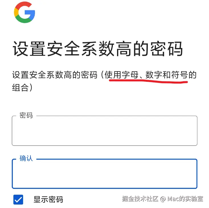 2025年注册Google账号第5步:设置谷歌账号的密码