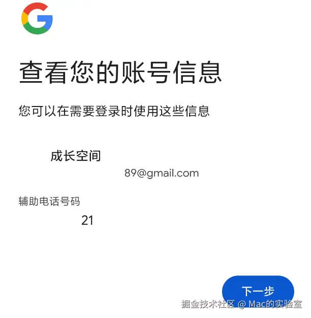 3、这里确认如果发现谷歌账号输错了,可以返回从重来。