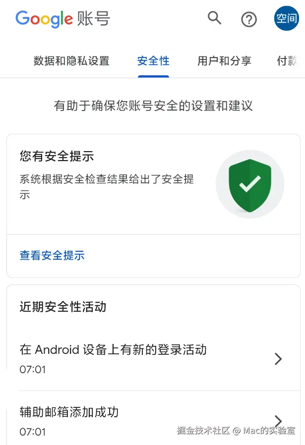 2025年注册Google账号第11步:安全性活动查看和设置建议