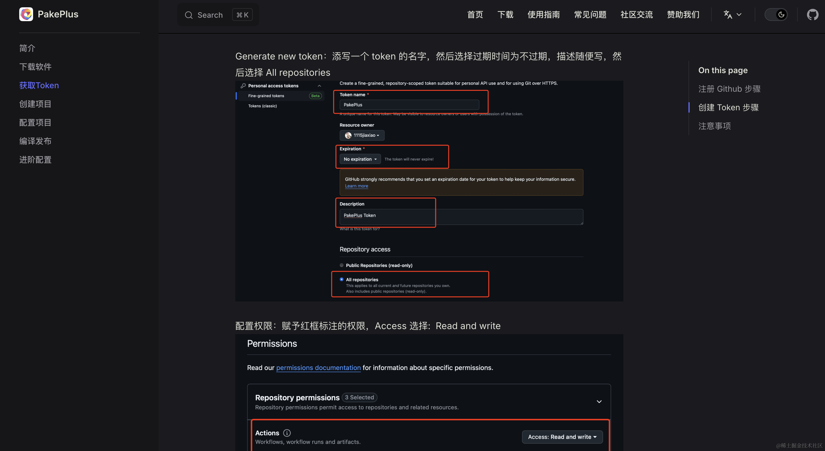 为什么要 Github Token?因为这个编译和打包流程全部依托在 github 平台上进行,所以需要使用 github token 来操作这些事情。Github 是一个开放的平台,任何人都可以创建账号,并获取到永久免费的 token。这里非常感谢 Github 提供的免费服务。获取 token 也很简单,没有账号的先注册一个 github 账号,然后到个人中心里面就可以创建 token。不会的可以看教程:获取 Token | PakePlus