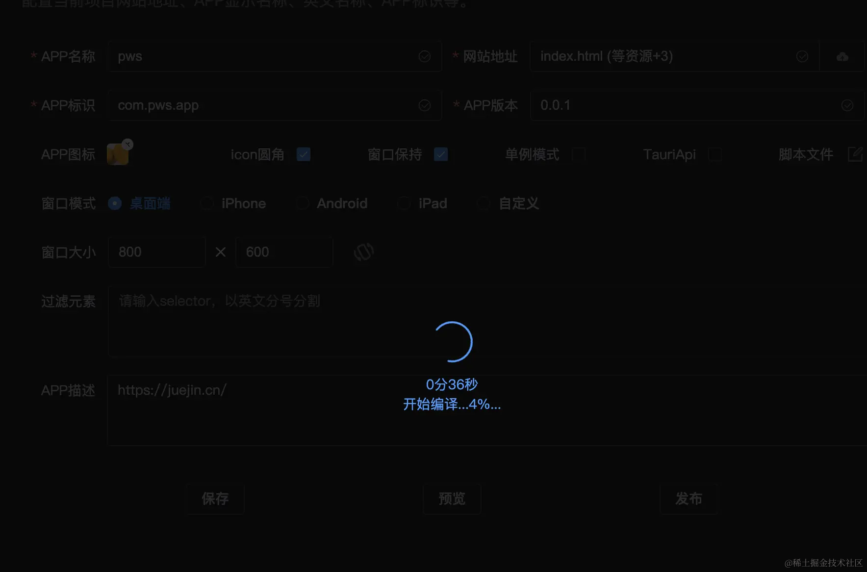 简单配置后,就可以点击预览按钮来预览你的软件最终显示的时候长什么样子了。 确认无误后,点击发布,就可以开始打包了。