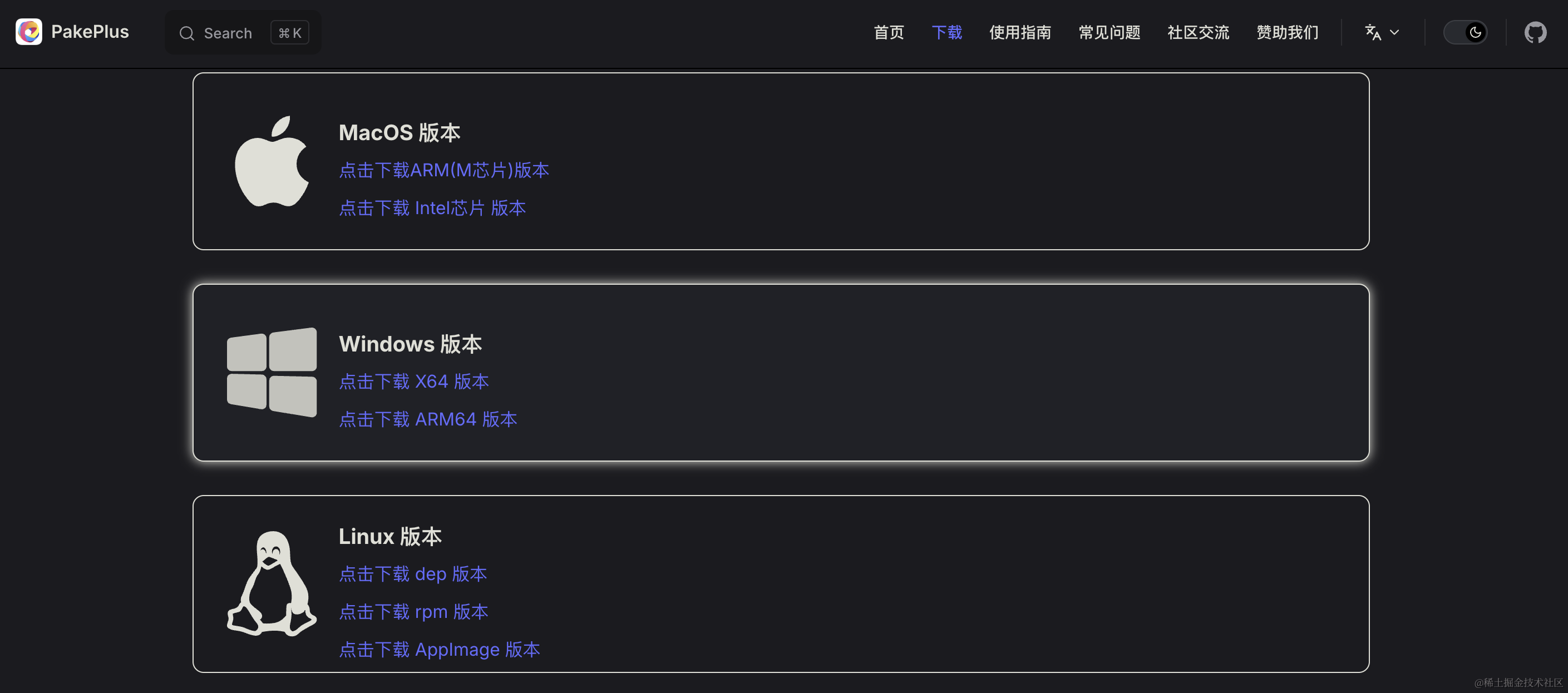 PakePlus本身也支持多个平台版本,因为他自己也是依托github跨平台编译的产物,下载链接:PakePlus