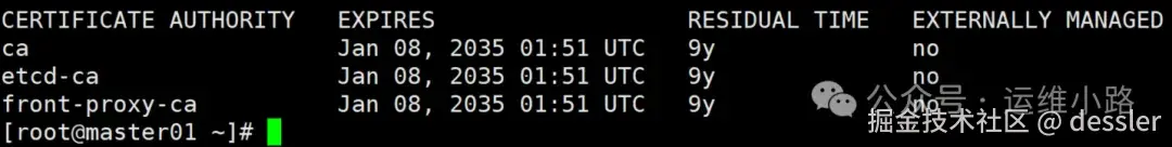 简单来说就是证书的颁发机构,也可以叫根证书。本身也是一个证书,并不会直接提供服务。当然他也是有有效期的,这个证书默认是10年。