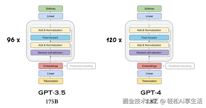 从GPT-3.5到GPT-4的模型规模(分别为175B和1.8T参数)。随着我们不断增大模型规模、增加网络层数并提供更多的训练数据,AI的能力也在不断提升。