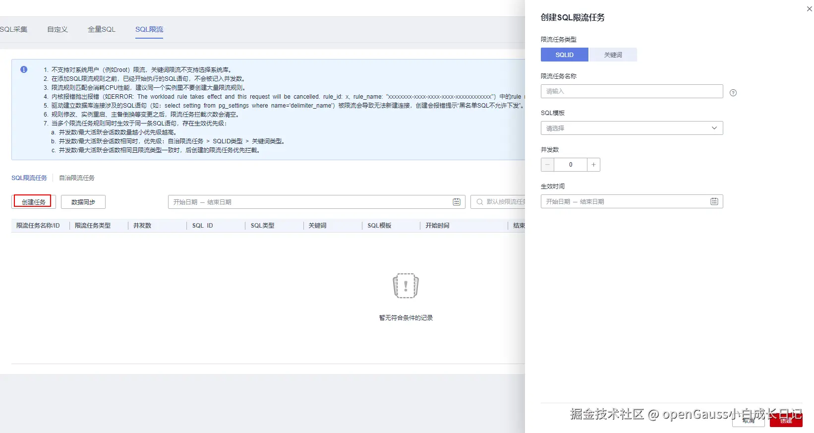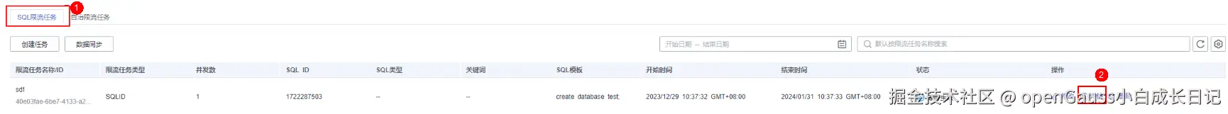 - 当前不支持批量删除SQL限流任务。