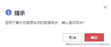 弹框中单击“确定”可以进行备份原实例后的数据同步。