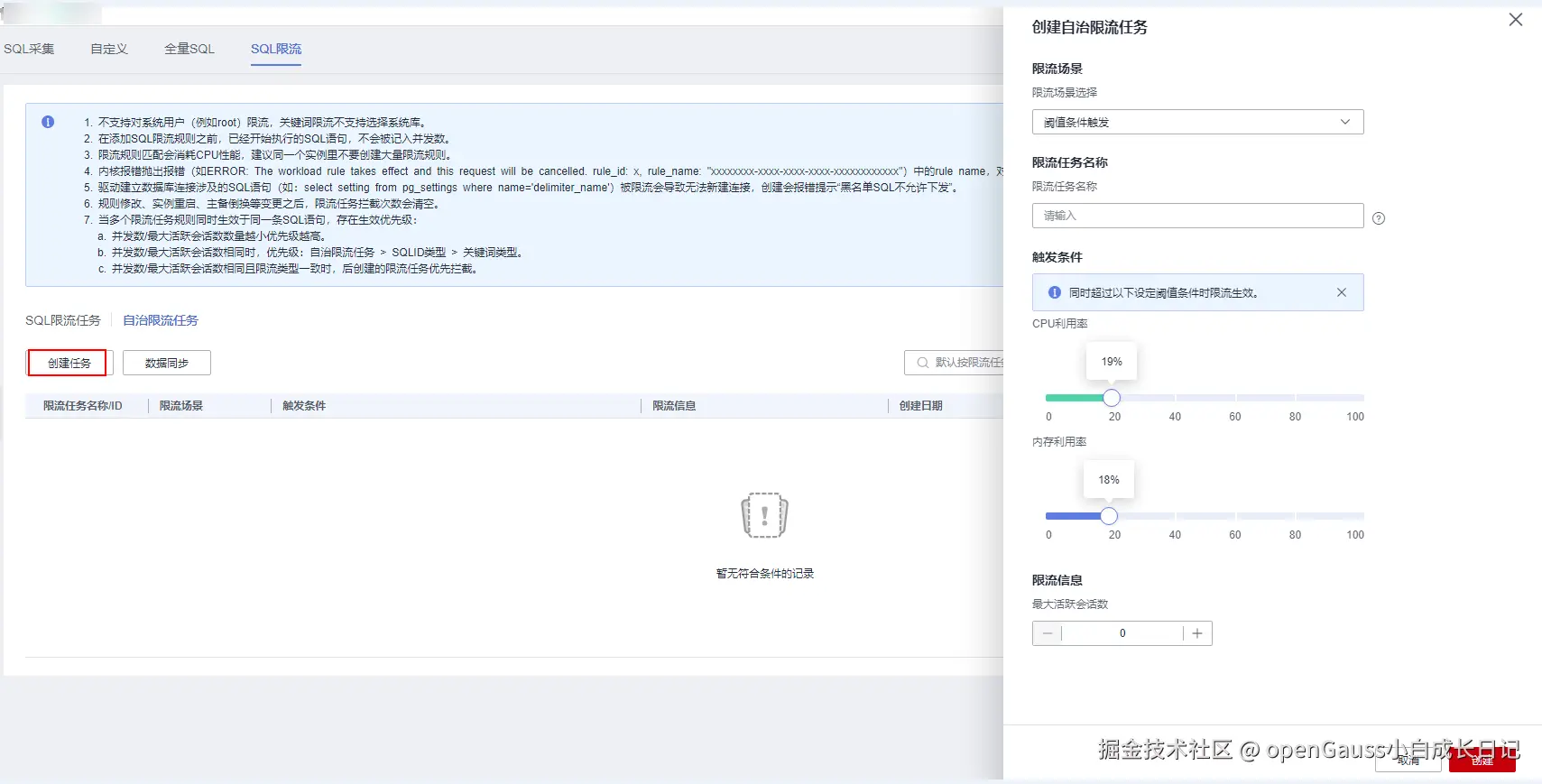 创建SQL限流任务