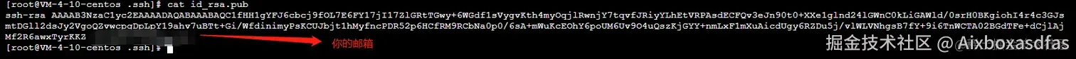 然后输入 cat id_rsa.pub来查看证书内容,复制他,一会要去git中配置