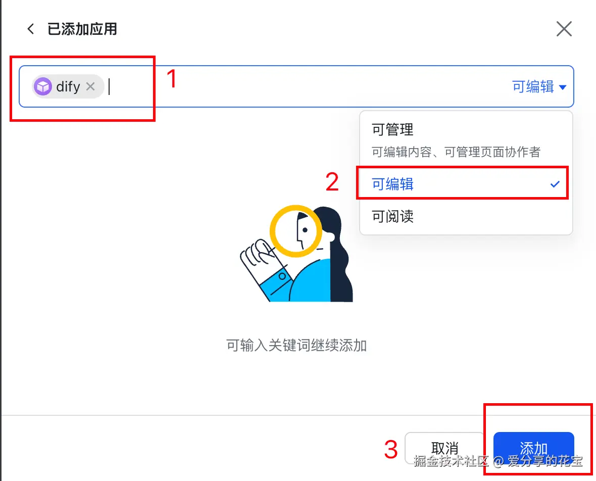 1.9.2 权限配置: 可编辑。然后点击 添加。