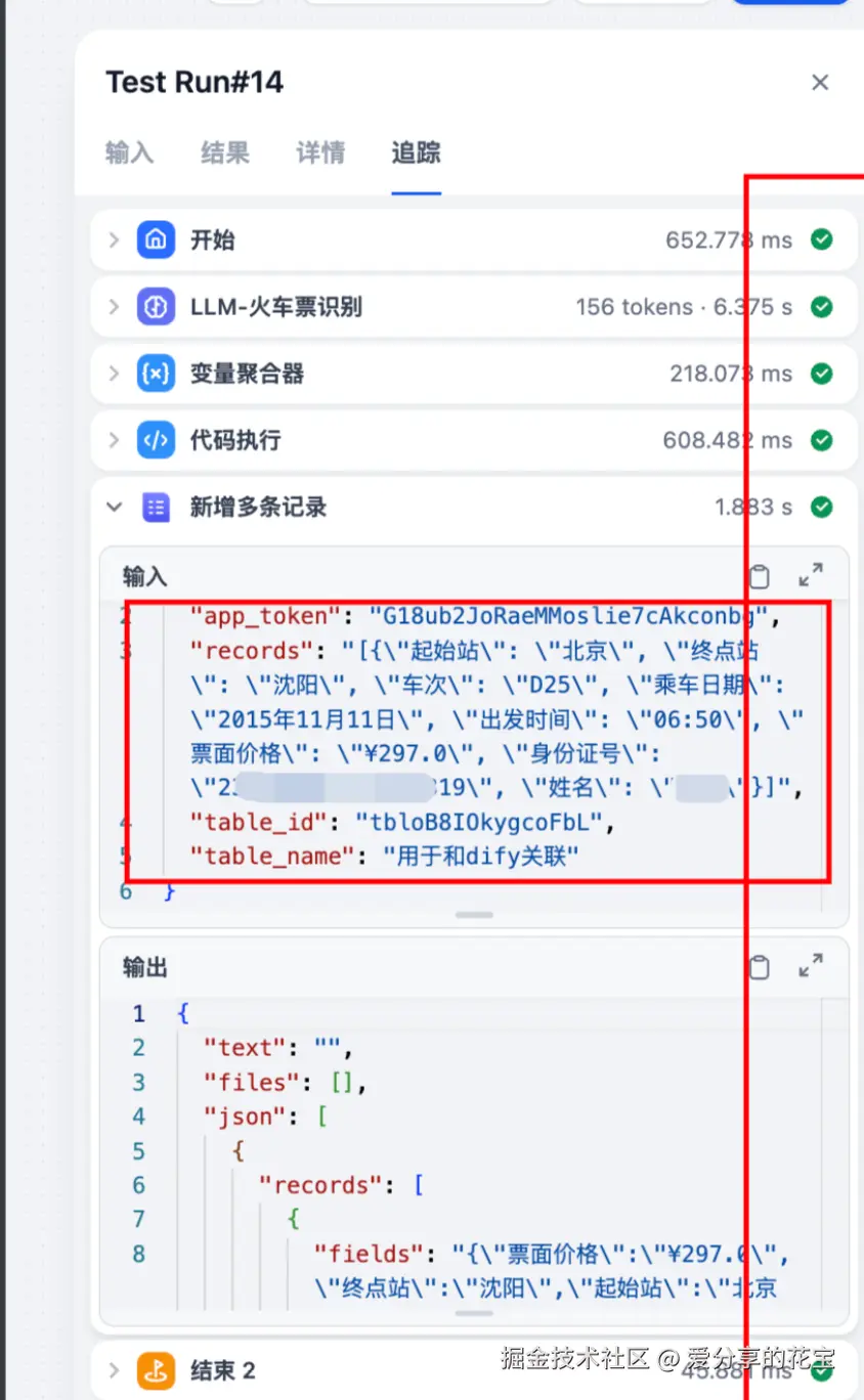 为的是把聚合后的数据处理一下,因为多维表格需要的是 json 数组。 我们的工作流输出的是: json 字符串。