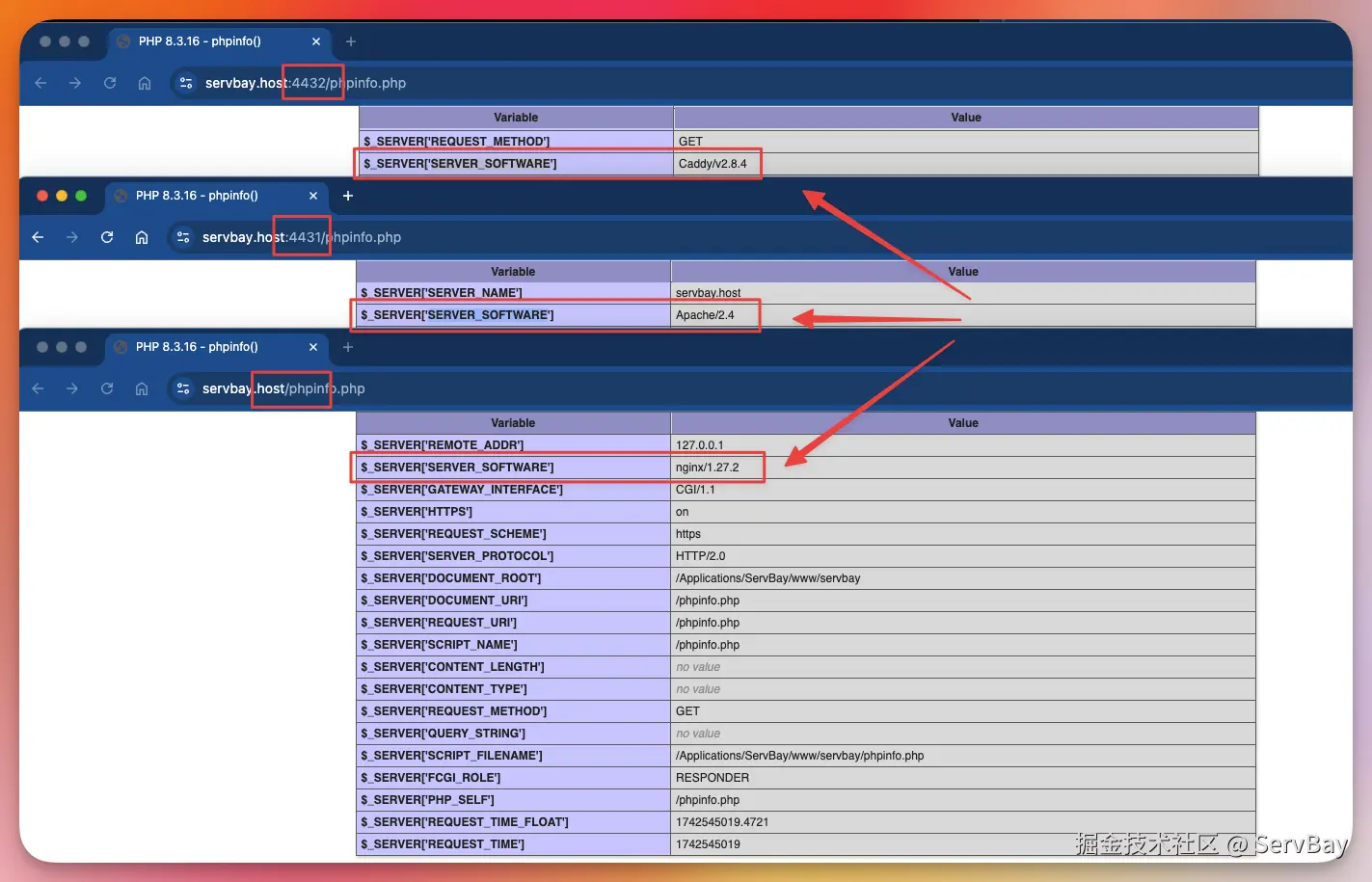 ServBay 是一个包含开发者日常开发所需工具和组件的集成平台。它可以在 3 分钟内一键配置好 Web 开发环境及开发语言,无需 Homebrew、Docker 等第三方依赖。ServBay 自带多种开发语言和数据库组件,包括 PHP、Nodejs等开发语言,MariaDB、MySQL、PostgreSQL 等关系型数据库,以及 Redis、MongoDB、Memcached 等 NoSQL 数据库。它还包括 Caddy, Nginx 作为 Web 服务,dnsmasq 作为 DNS 服务,并包含 Mailpit 邮件服务器、MinIO 存储服务、RabbitMQ 队列服务等开发者必备的套件。极大方便开发这儿的使用。感谢一直以来对ServBay的支持,欢迎加入我们的微信群,获取最新的消息,我们工作人员随时为您答疑解惑。