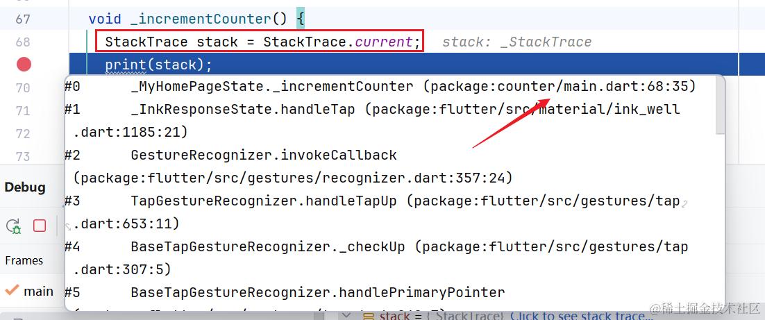 StackTrace.current可以获取当前代码位置的调用栈信息