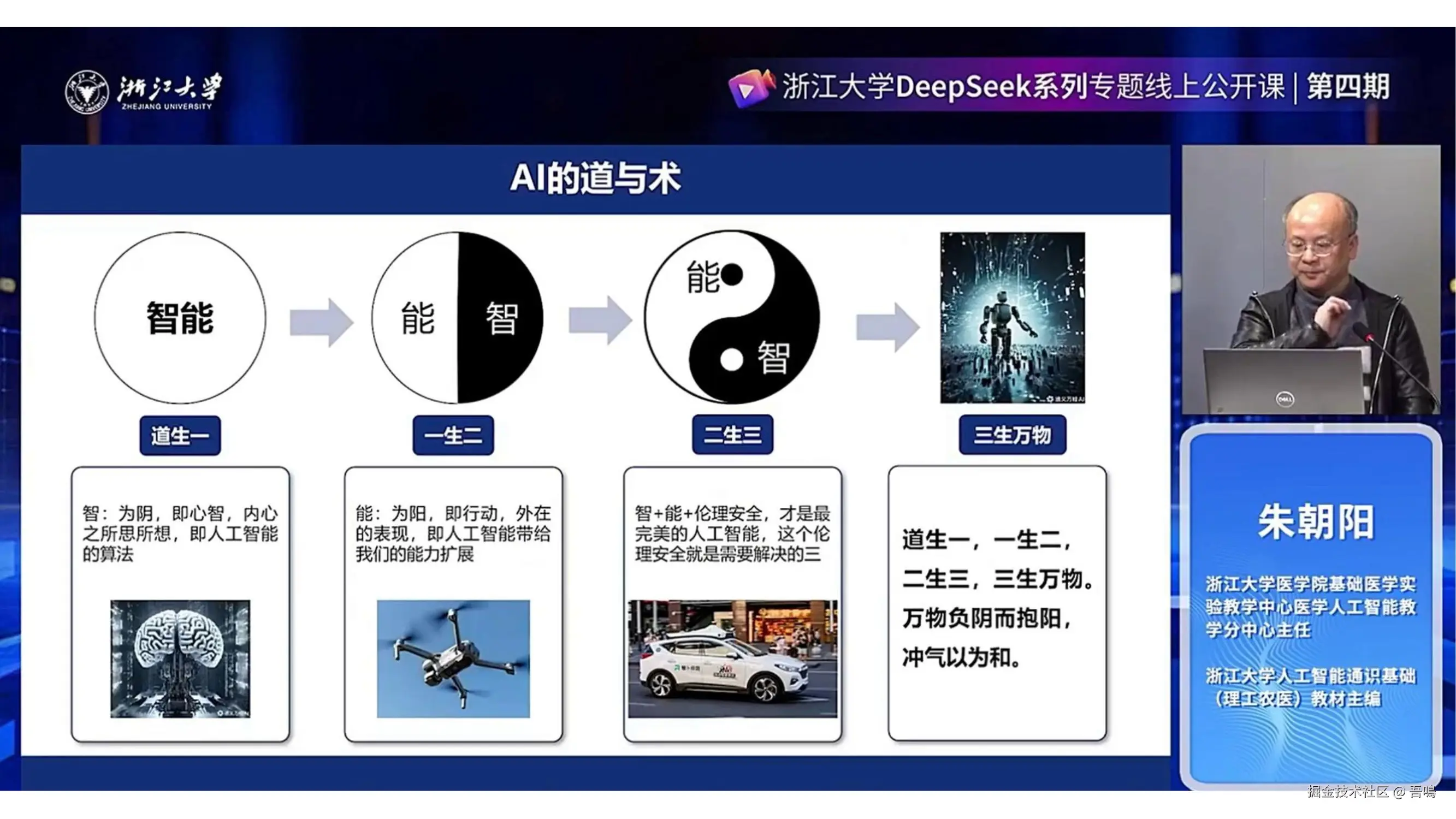 结合《道德经》《易经》等哲学思想,提出AI发展的“道”与“术”需统一,即以规律(道)指导技术(术)。重点讨论伦理安全问题,如自动驾驶的“电车难题”、算法偏见、隐私与公共安全冲突、AIGC幻觉等,主张通过“阴阳气和”的平衡理念(如智、能、伦理三要素结合)解决矛盾,避免技术滥用。