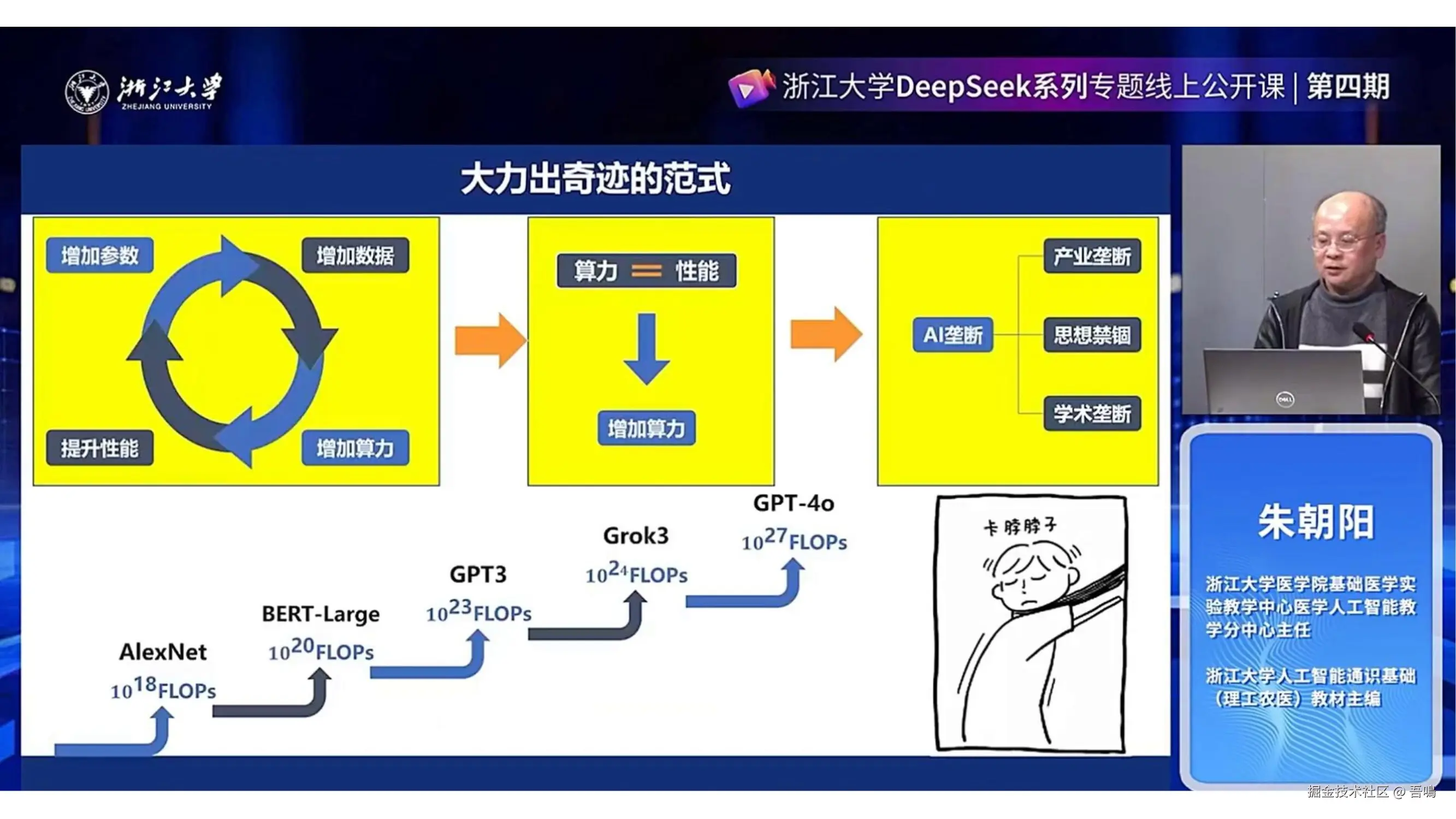 - AI的资源效率问题:对比Grok3与DeepSeek的算力需求,强调通过算法革新(如思维链、知识蒸馏+MOE架构)和算力优化打破技术垄断,实现小规模高质量数据的更高效利用。