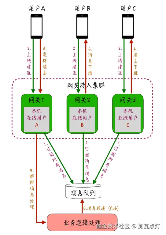 - 所有网关消费全量消息,过滤本地连接用户
