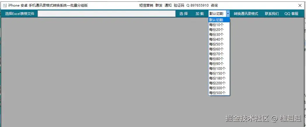 将表格导入软件,选择——加载——选择拆分大小——转换通讯录格式