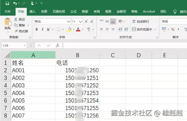 首先、将号码做成表格的形式:一列【姓名】、一列【电话】