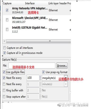 02 选择需要抓包的网卡进行分包设置,按照大小进行文件分片