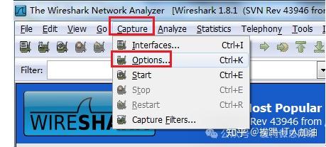01 在wireshark软件中进行分包抓包设置,单击Capture-Options