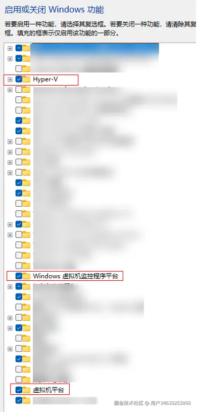 - 如果CPU支持虚拟化,打开控制面板 > 程序 > 程序与功能 > 启动或关闭Windows功能,找到并勾选“Hyper-V”、“Windows虚拟机监控程序平台”、“虚拟机平台”,点击确定并重启电脑。若勾选后启动模拟器仍然提示该错误,需要以管理员权限打开命令行窗口并执行:`bcdedit /set hypervisorlaunchtype auto`并重启电脑。