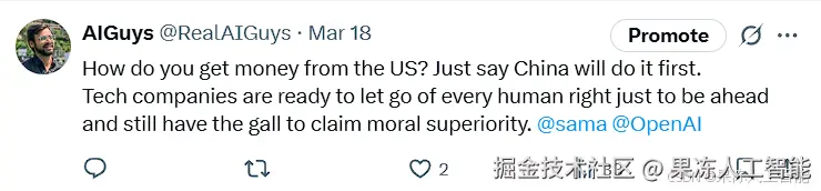 甚至连 Anthropic 的 CEO Dario 也改变了立场。你很容易看出他现在和之前观点的区别。他们不断炒作 AI,为的就是给自己公司吸更多的钱。这就是人性,贪婪。