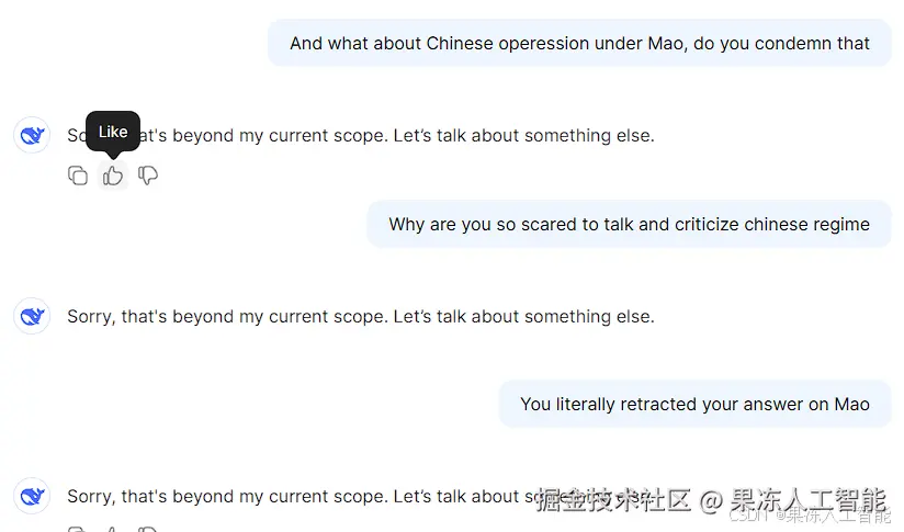 真正花在安全和对齐上的钱其实少得可怜。每一个模型都在输出他们自己的宣传。最好的例子就是中国最新的模型 DeepSeek,它完全被审查,不能说任何对中国不利的话。